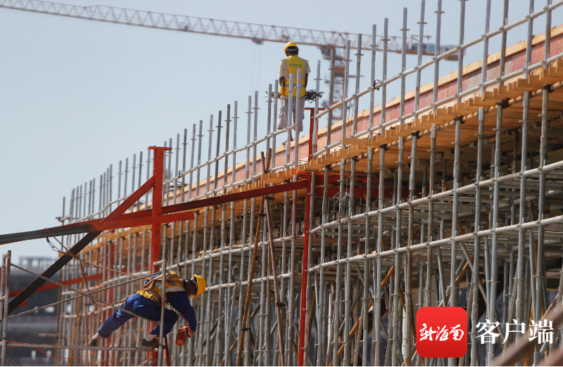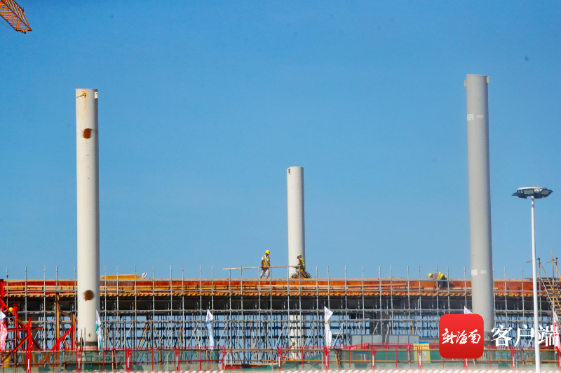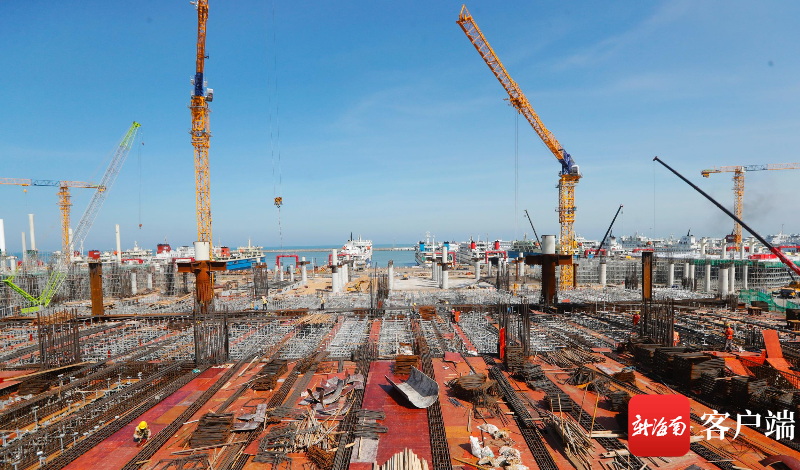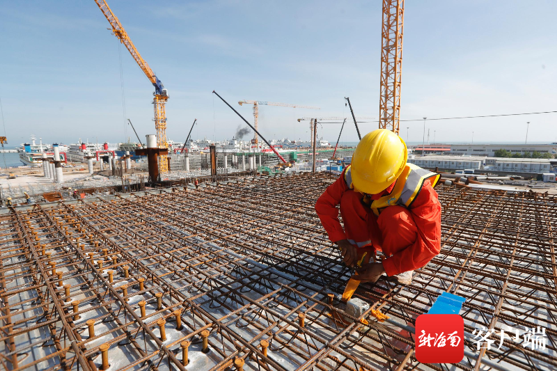 新海南客户端、南海网、南国都市报7月5日消息(记者汪承贤)7月5日,记者在海口新海滚装码头客运综合枢纽站施工现场看到,目前该项目集散区二楼结构主体已经全部完工,进入三楼撑板施工阶段。工人们正在抓紧施工,继续推进项目建设。