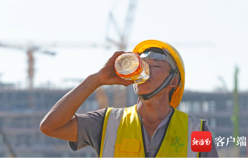 喝口水缓缓气接着再干。记者 汪承贤摄