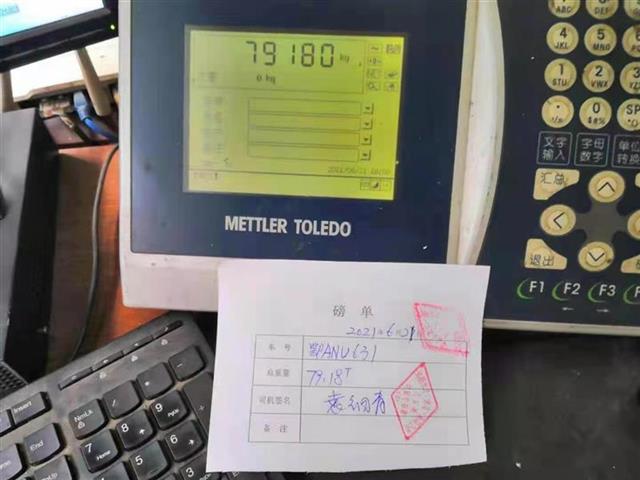 经称重测试,“半挂”整车质量79.18吨,超出限重上限24.18吨,属于较为严重超限违法行为。执法人员现场告知司机,需对超限行为进行取证,并将依法组织货物卸载。该司机配合执法人员将车辆开进卸载停车场等待卸载。