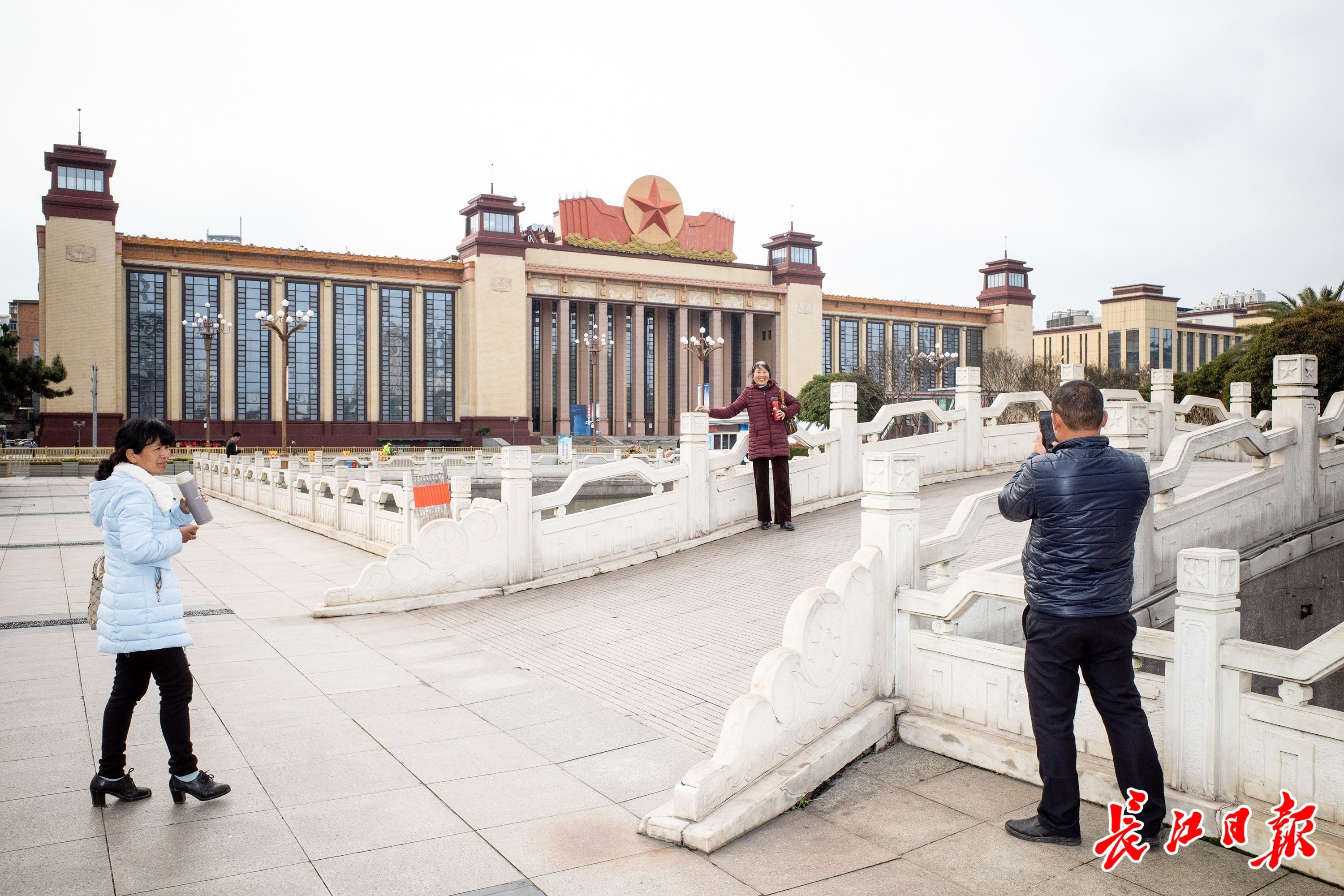 3月9日,游人在南昌八一广场留影。