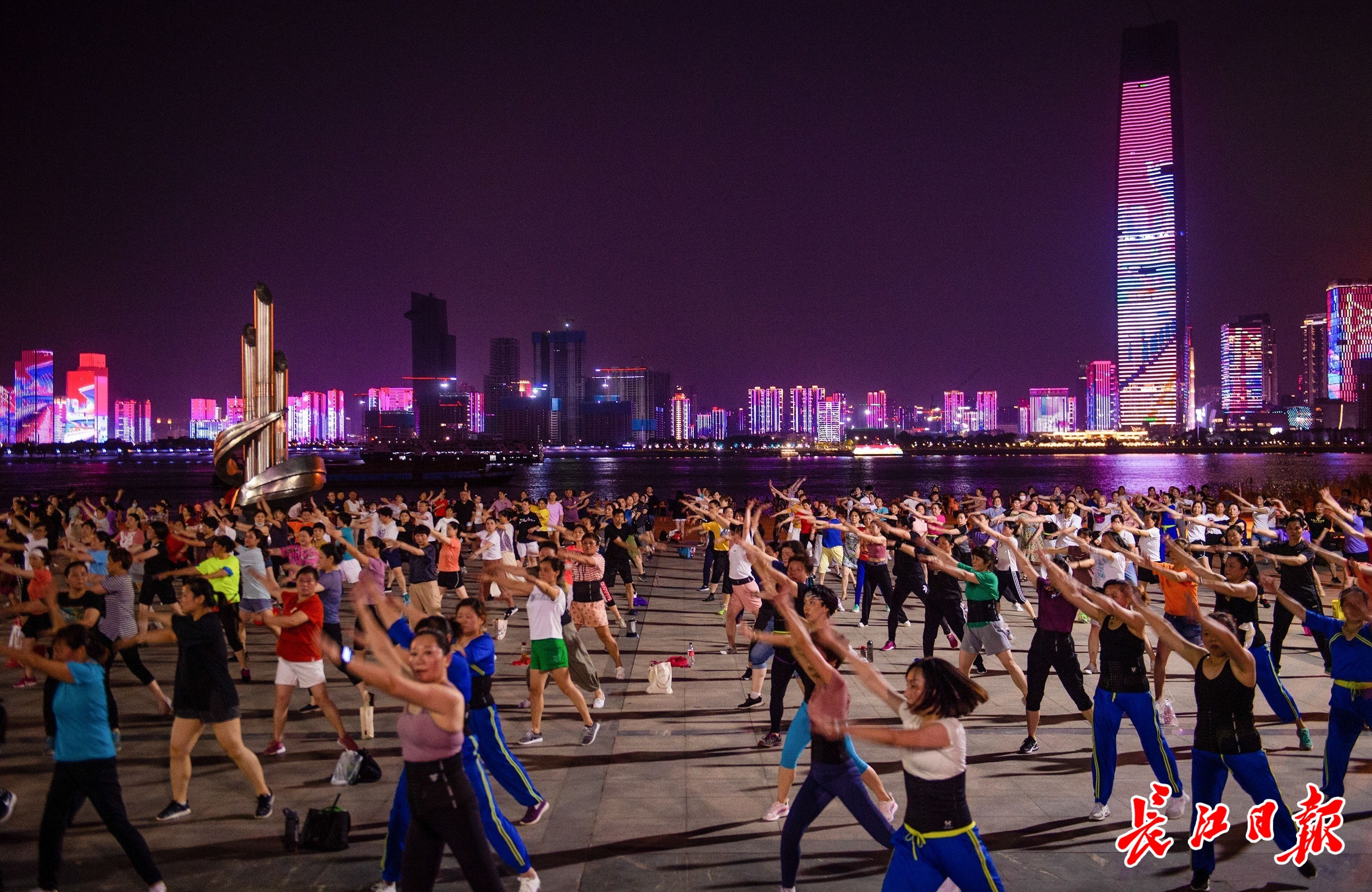 6月23日晚,武汉长江灯光秀“建党百年特辑”在楼宇间继续上演。