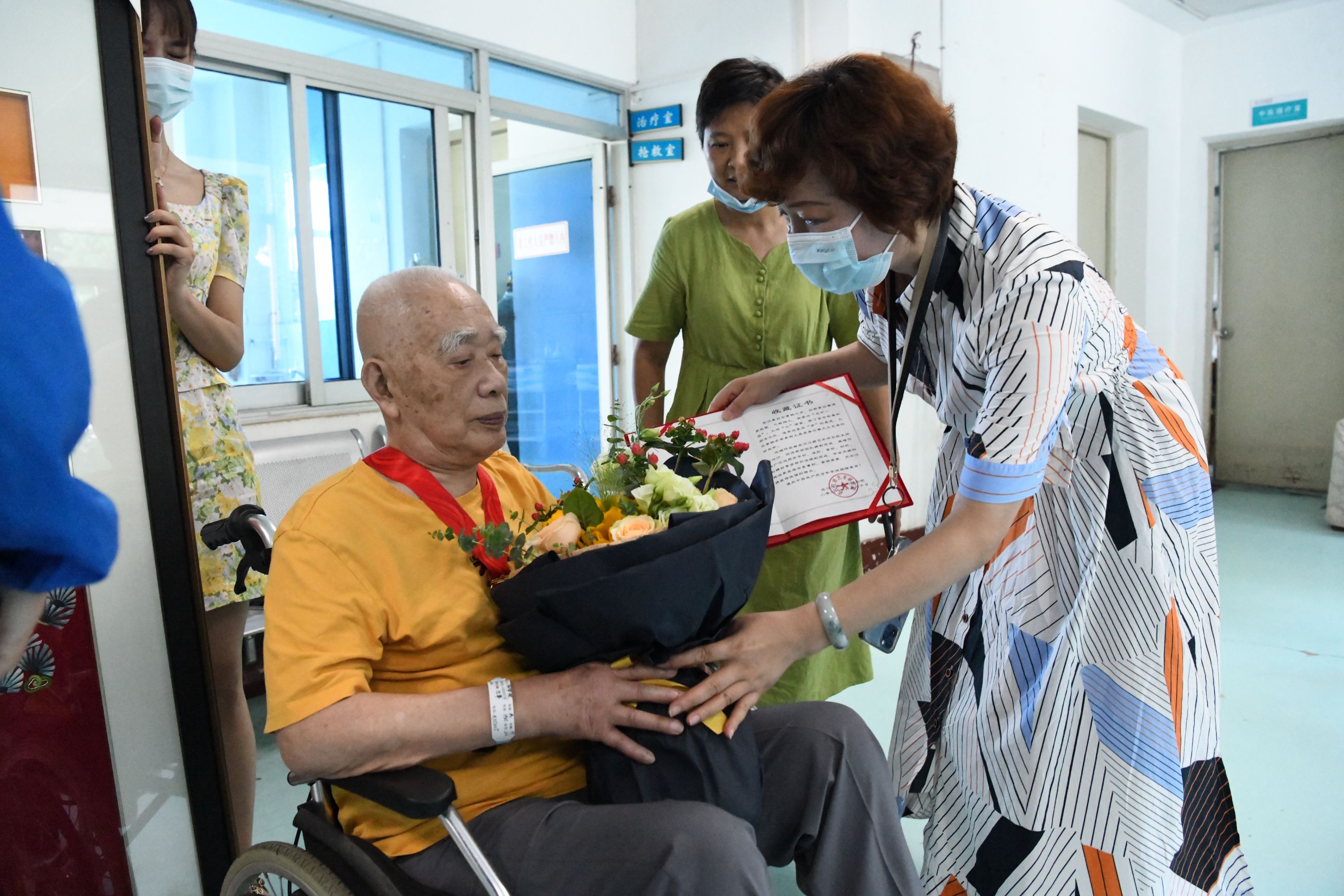 长江日报7月6日讯 “陈老,提前祝您百岁生日快乐!向您及广大老党员们致以崇高敬意。”6月30日下午,一件由中国刺绣艺术大师、汉绣省级代表性传承人任本荣及传人创作的汉绣作品《松鹤延年》送到了武汉东湖医院陈梦浓老人手中,这位有着73年党龄的老党员今年8月就将满百岁。