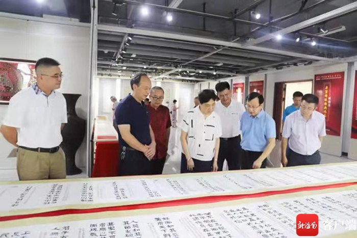 海南软件职业技术学院党委书记詹少斌,校长魏应彬,党委副书记刘明鹏以及副科级以上党员干部、公共教学部全体教师、学生代表参观了展览。