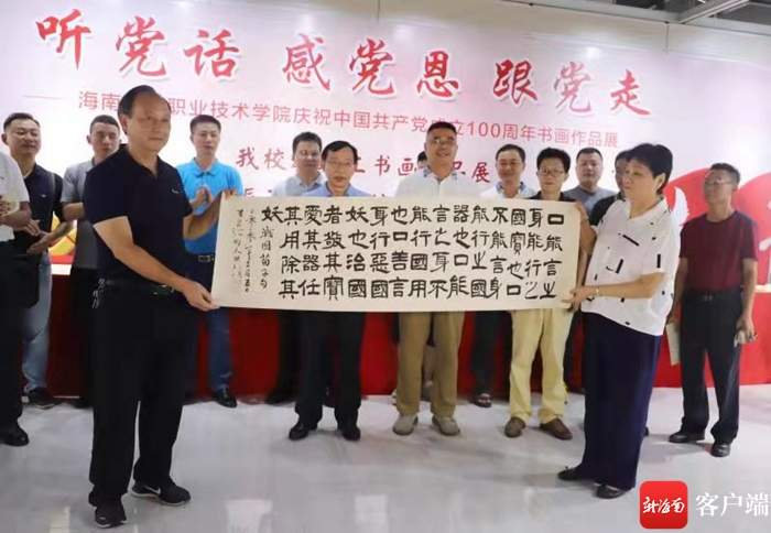 新海南客户端、南海网、南国都市报7月6日消息(记者 任桐)7月5日,海南软件职业技术学院“听党话·感党恩·跟党走”庆祝中国共产党成立100周年书画作品展在学校实训楼一楼展厅开展。