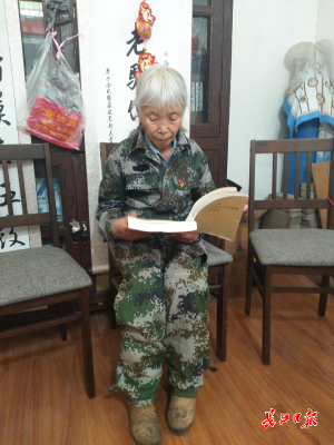 长江日报7月6日讯 5月31日早晨,在湖北省军区武汉第二干休所,一位穿着迷彩服、头发花白、身材瘦小的老太太,正在自家小院内散步。院内花木繁盛,蜂蝶在草木间穿梭,翩翩起舞;小鸟在树枝上鸣叫,呼朋引伴。