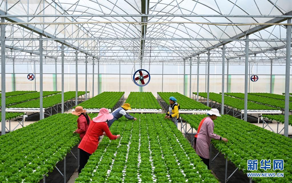 4月27日,搬迁群众在云南会泽县道成公司蔬菜大棚里劳作。新华社记者 王冠森 摄