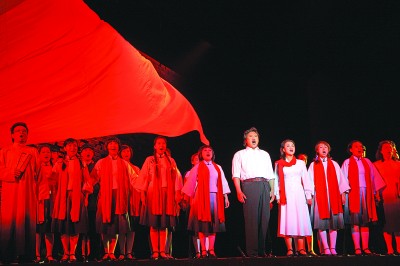 2009年5月1日,歌剧版《青春之歌》在北京大学百周年纪念讲堂首演。主演金曼(右四)和戴玉强(右五)在演出中。资料图片