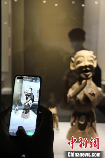 今年菏泽孙大园堌堆遗址出土的“萌兽”吸引观众驻足观看。 赵晓 摄