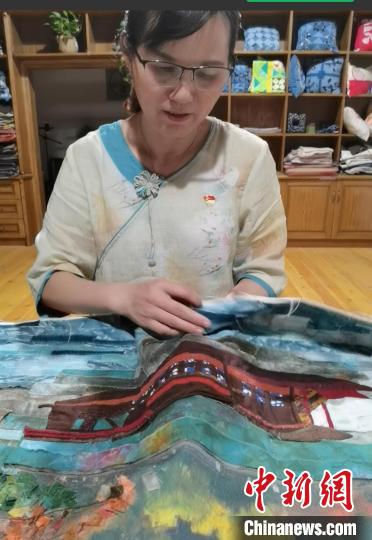今年56岁的杨惠娟是布画的主要创作者,她所在的大麻镇有“中国家纺布艺名镇”之称,2019年退休后,杨惠娟便开始了拼布创作。对于该布画三个多月的创作历程,她用“蛮有意义的”来形容。
