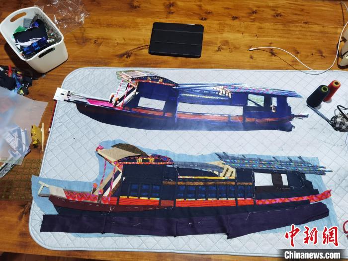 “之前我的作品都是一些花花草草或是装饰物,那我可以抱着‘玩一玩’的心态去创作,但这一幅的意义不一样。”杨惠娟表示,为了尽可能实现逼真的效果,布画中仅红船部分她就重做了三次。