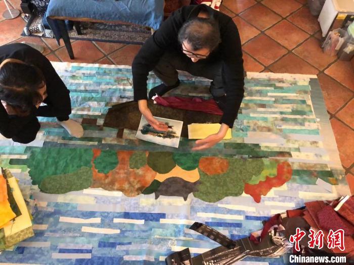 随着创作的推进,她原先准备的100种颜色的布料显得有些“捉襟见肘”,好在“方法总比困难多”,在当地妇联的号召下,各行各业百名妇女们参与到了这场“接力赛”。有的具备拼布手艺就一起参与创作,有的开设布衣企业就拿出布料支援,有的“在家带娃”就拿出孩子不要的衣服做材料,实在没有合适的颜色,杨惠娟就自己动手配料染色。