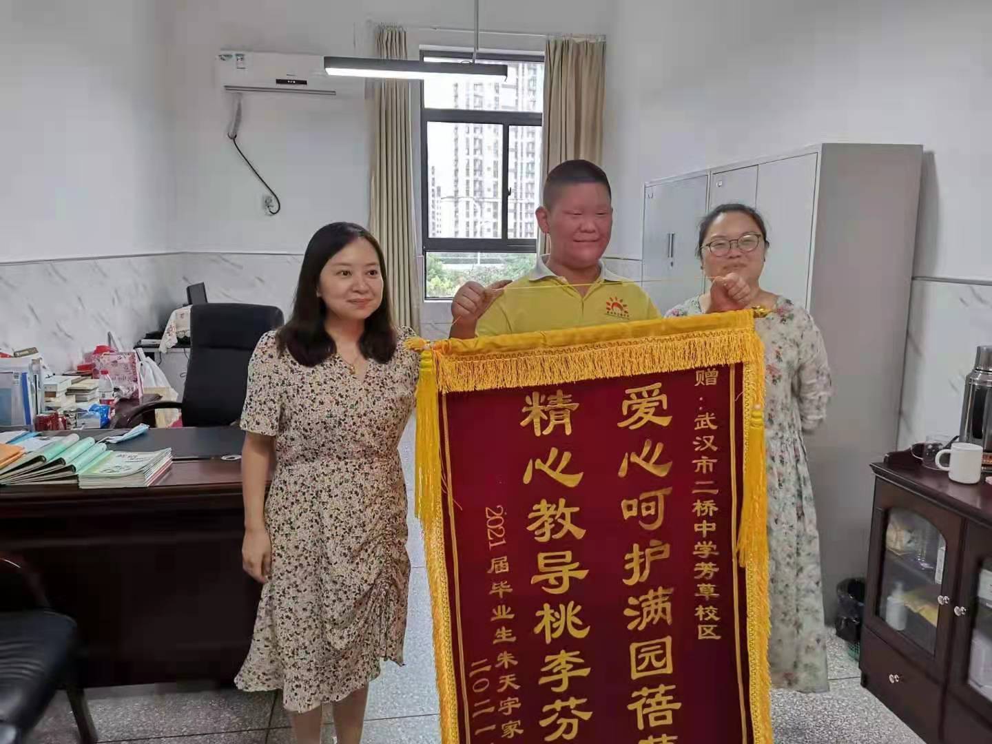 收到这份珍贵的礼物,老师们特别感动。班主任语文老师李霞介绍,朱天宇的中考成绩超过了武汉三中的校线,是非常不易的。他患有遗传性慢性湿疹,每当季节转换、天气闷热、心理压力过大时,烦躁瘙痒的症状就会遍布全身,每每此时他都频繁抓挠,完全无法静心听讲。尽管如此,他还是尽全力主动求知,在老师们眼里他是个学习互动性高、动手能力强的好学生。每当他生病在家时,本班老师常常利用网络通信为他点对点答疑解惑。