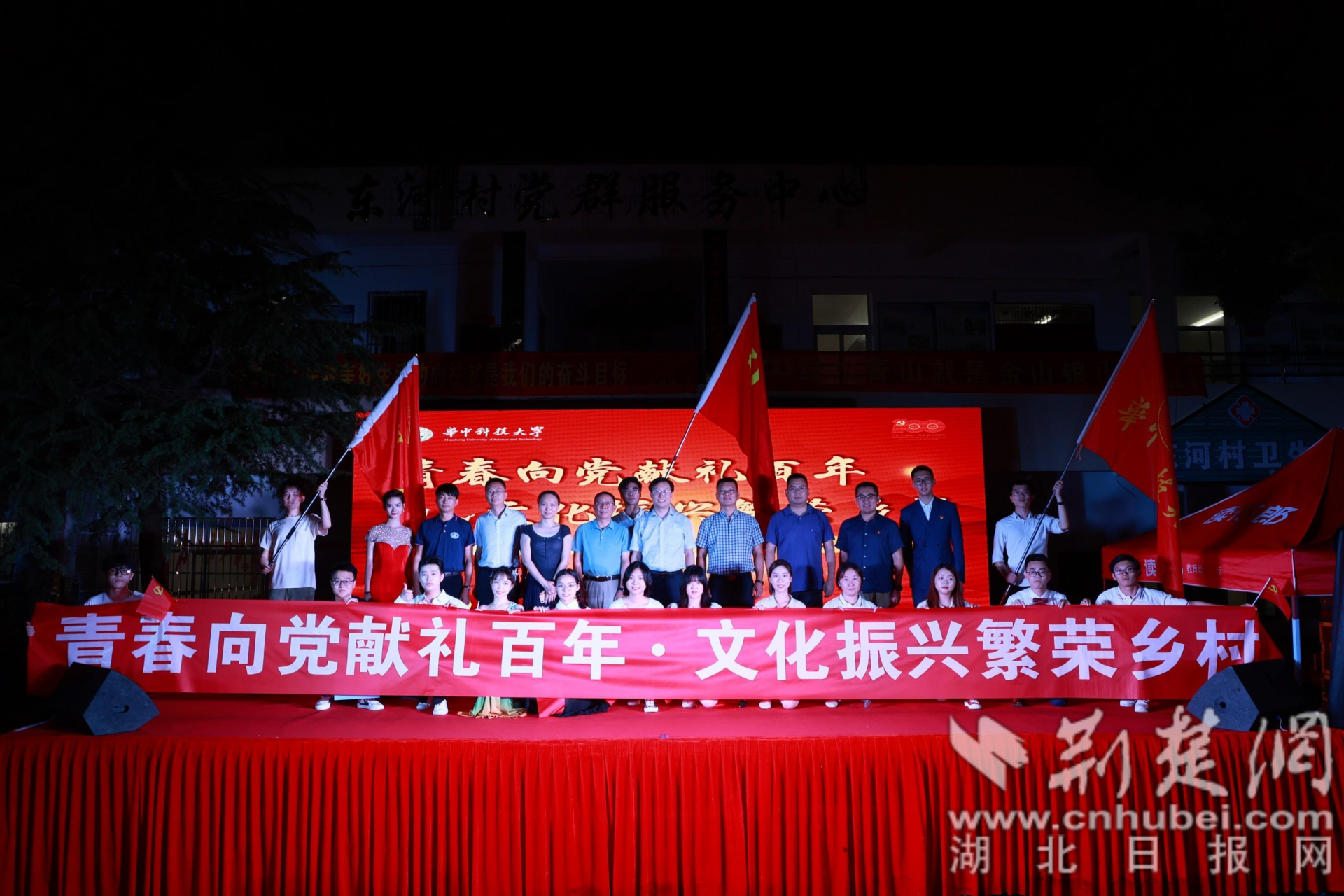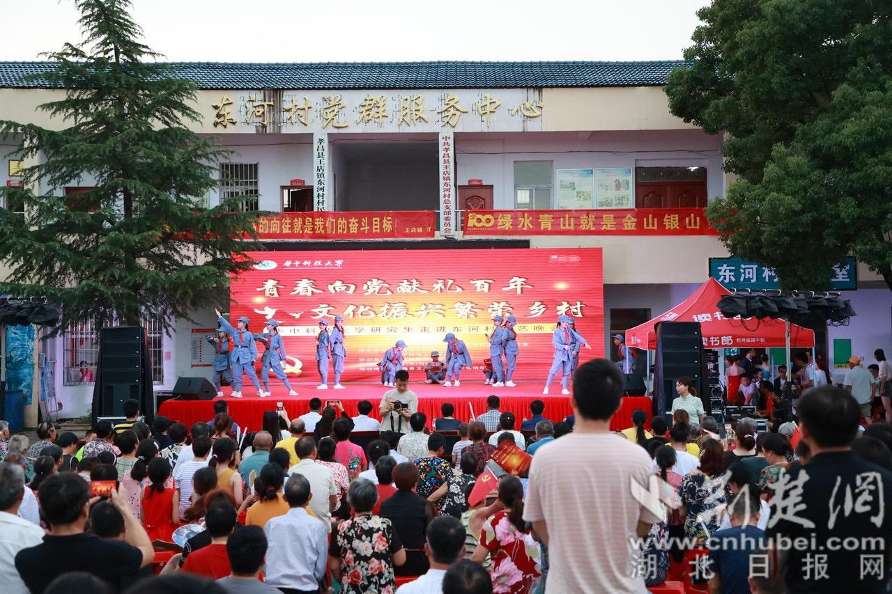 荆楚网(湖北日报网)讯(通讯员 吴荣)7月7日晚,华中科技大学的研究生们走进王店镇东河村开展“青春心向党,文化振兴繁荣乡村”文艺晚会,为村民们献上了一份丰富的文化大餐。