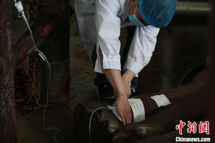 图为医护人员在为“非非”输液。 阚力 摄
