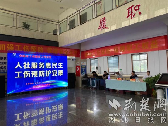 市人社局、武汉优抚医院工作人员现场讲解工伤保险知识。通讯员供图