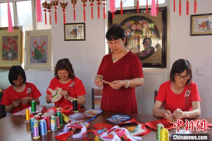 图为和顺县扶贫厂房内,妇女们正在刺绣。 和顺县融媒体中心供图