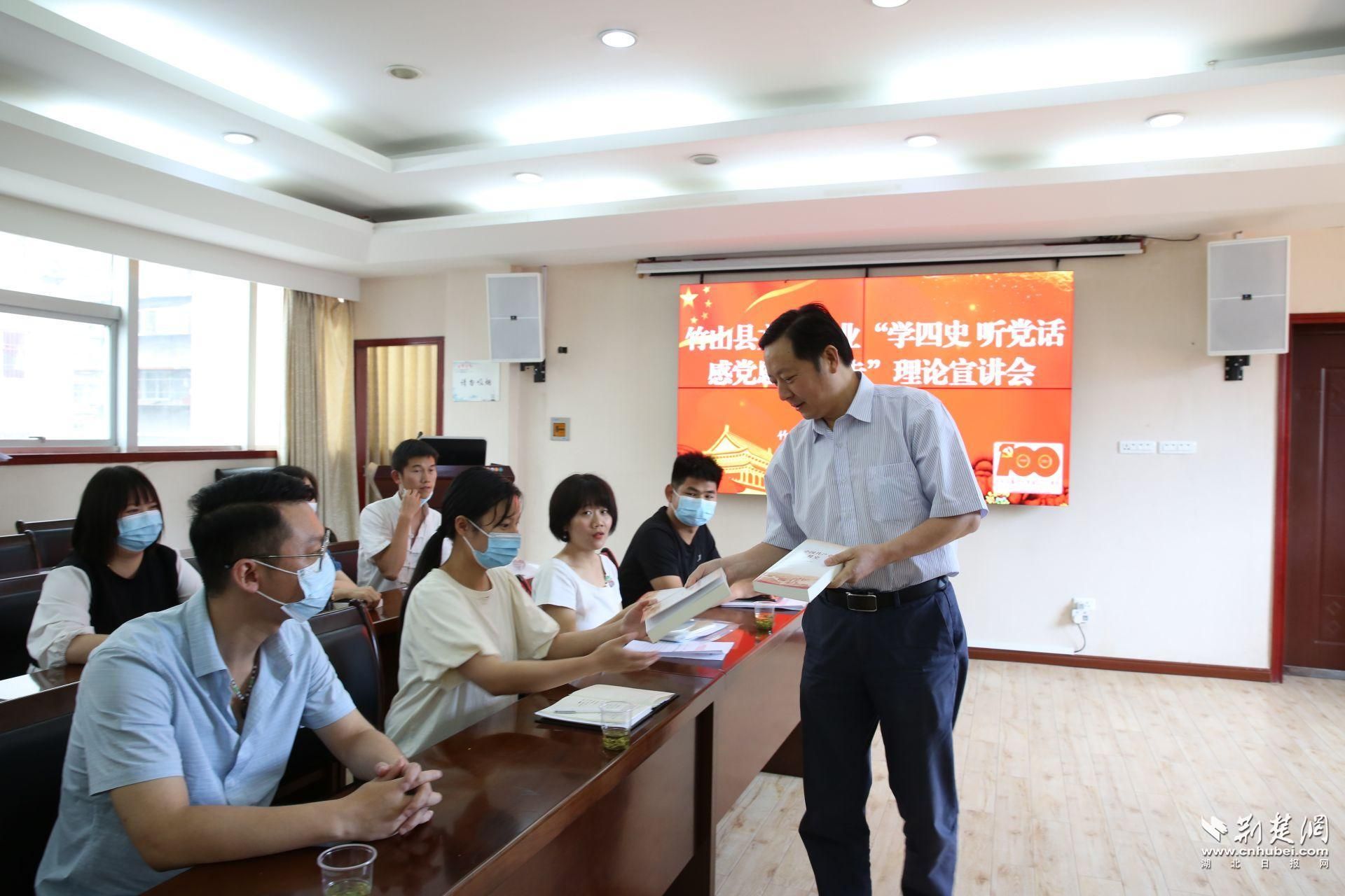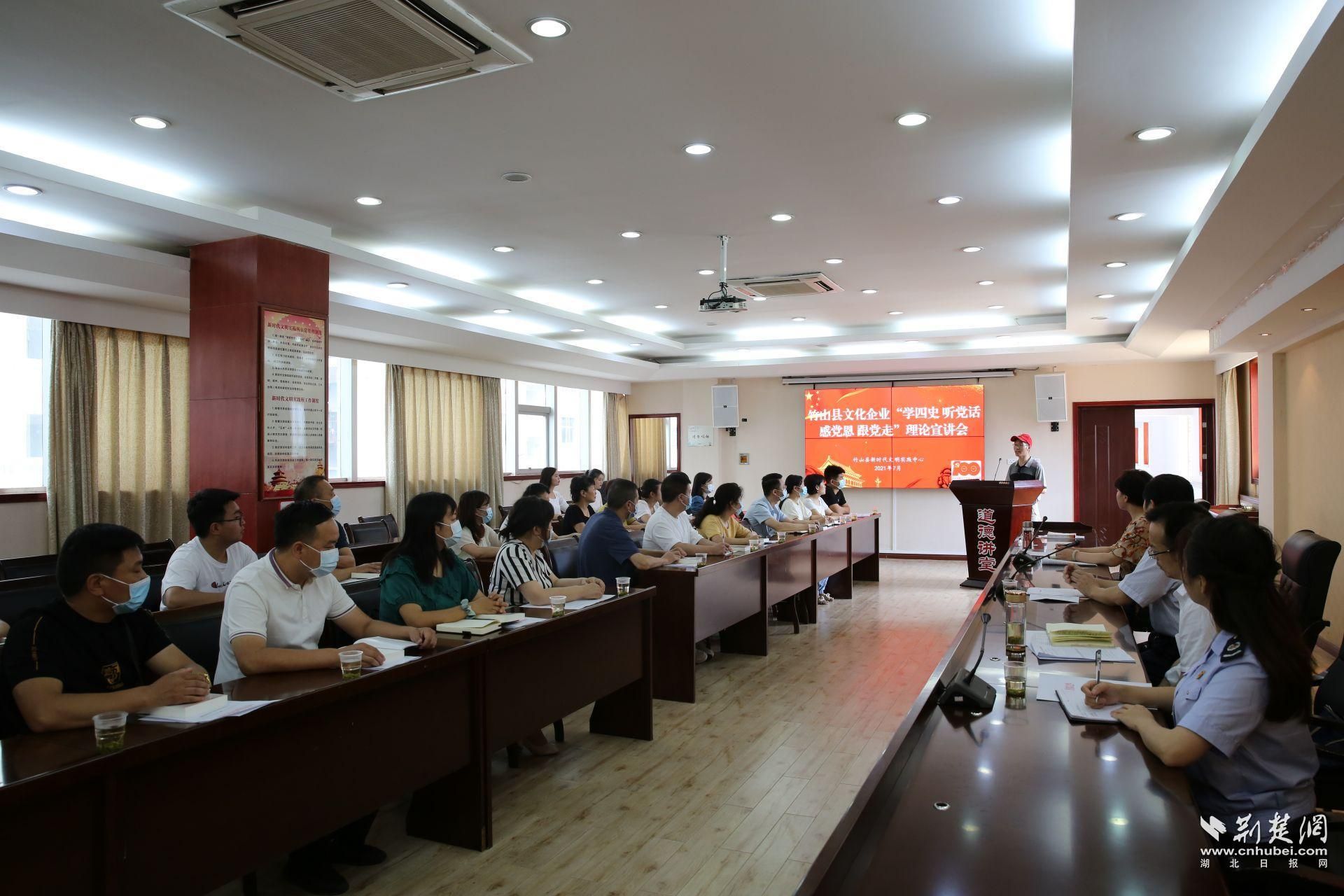 荆楚网(湖北日报网)讯(通讯员 朱友金 章伟)“通过学习‘四史’,我们要深刻认识红色政权来之不易、新中国来之不易、中国特色社会主义来之不易......在学习‘四史’中进一步增强文化产业发展的信心,进一步坚定听党话、感党恩、跟党走的决心。”圣水湖旅游度假区负责人李德琴分享学习感受。2021年7月8日上午,竹山县新时代文明实践志愿服务理论宣讲支队面向全县规上文化企业开展‘四史’理论宣讲活动。