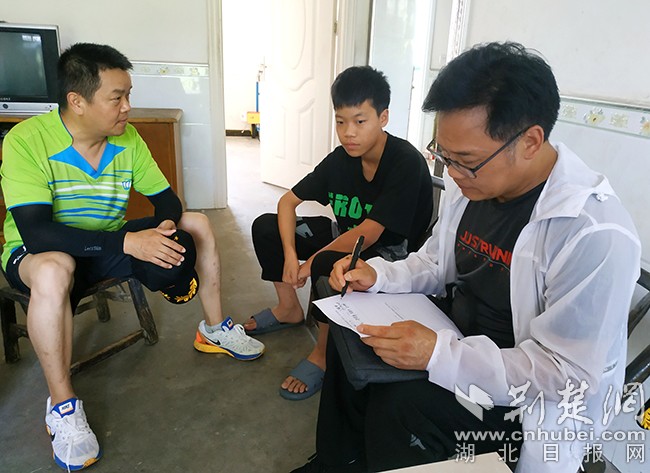 7月9日,丹江口市丁家营中心学校夏季暑期安全“访万家”工作进入第二天。在丹江口水库之滨的二道河移民安置点八年级赵俊伟同学家,中心学校校长王雪晓悉心询问暑期孩子的生活、学习及暑期“防溺水”安全教育等情况。谆谆叮嘱着这位同学和他的家人。一贯制学校校长黄太明一边颔首鼓励肯定孩子,一边认真地填写“访万家”记载表。