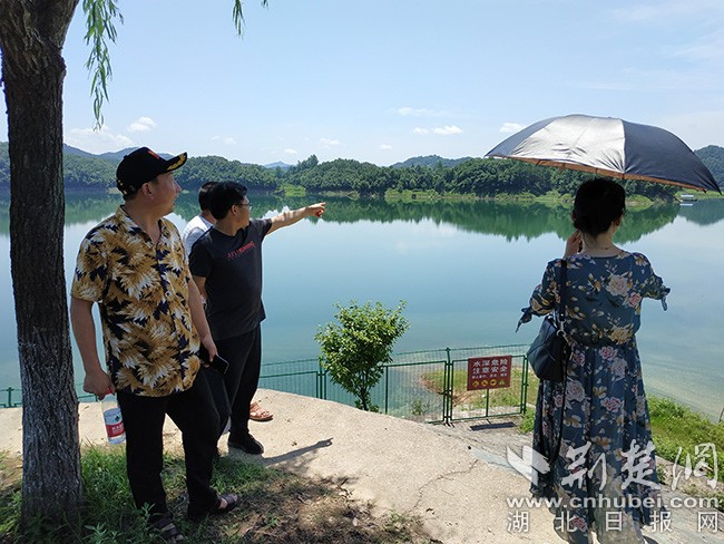丹江口水库库畔查看防溺水警示牌。通讯员供图