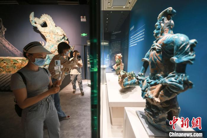 民众参观“观妙入真——永乐宫保护与传承特展”,观赏3D打印的永乐宫壁画。 张云 摄