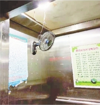 记者采访中发现,有的小区物业在电梯内加装了摇头电扇,以保持电梯通风换气。