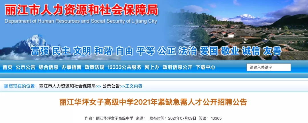 7月9日,云南省丽江市人力资源和社会保障局官网发布公告,