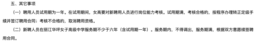 ,在试用期间,女高要对新聘用人员进行岗位能力考核;新聘人员在丽江华坪女高