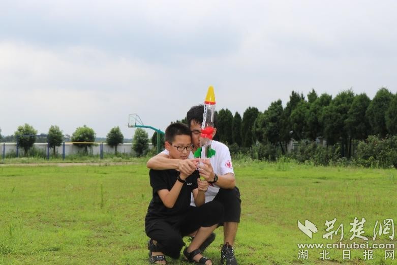 蓝色课程主题为科学启蒙教育。本次课堂由“艺漾年华”志愿服务队张志超,庞传杰两位同学主讲。为了让孩子们能够更加生动直观地了解航空航天知识,他们自己亲手制作了火箭模型,并且模拟了火箭发射的过程。