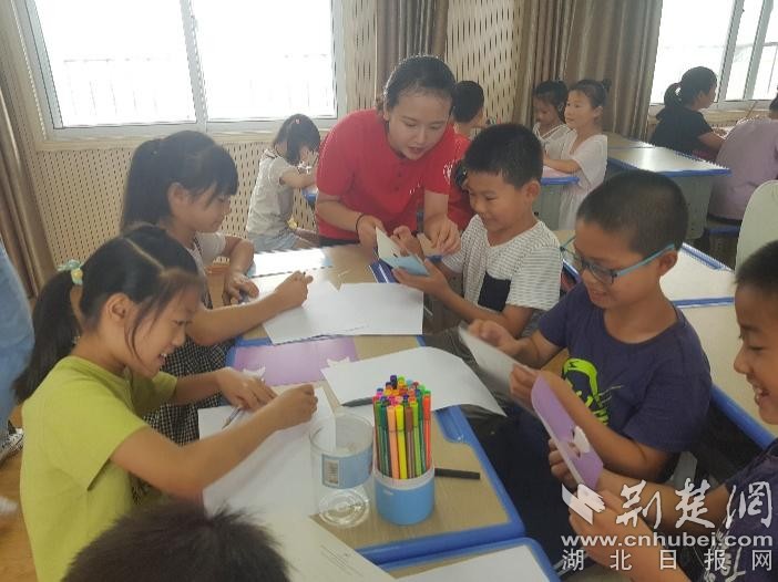 荆楚网(湖北日报网)讯(通讯员余苗、吴焱)为了改善农村素质教育不平衡不充分发展的现状,促进留守儿童德智体美劳全面发展,2021年7月7日,武汉体育学院“艺漾年华”志愿服务队赴安陆市接官乡中心小学开展了为期十天的“七彩假期”志愿活动。根据农村留守儿童的认知能力与学习水平,从音体美艺术教育角度出发,打造了专属于农村留守儿童的“七彩课堂”。