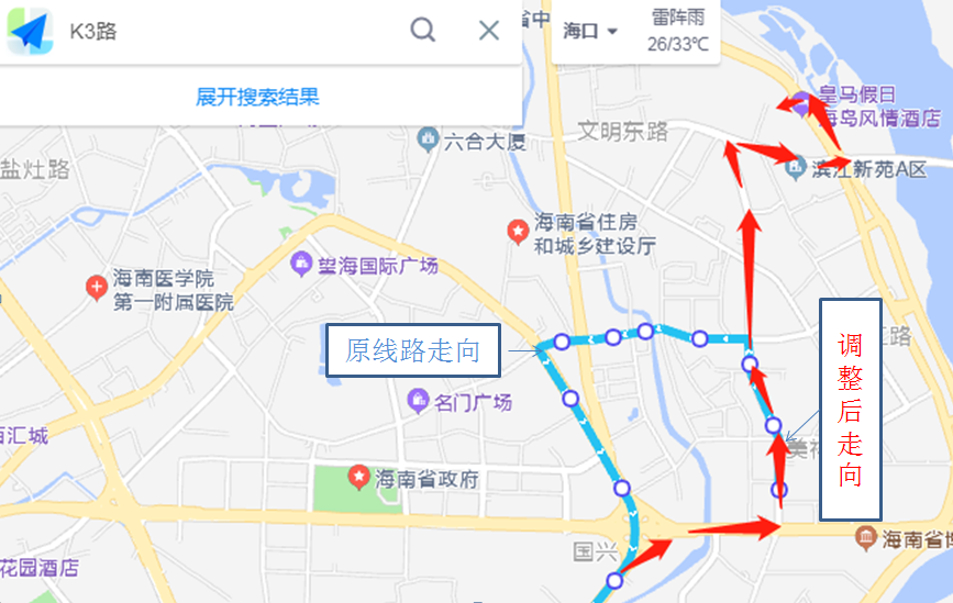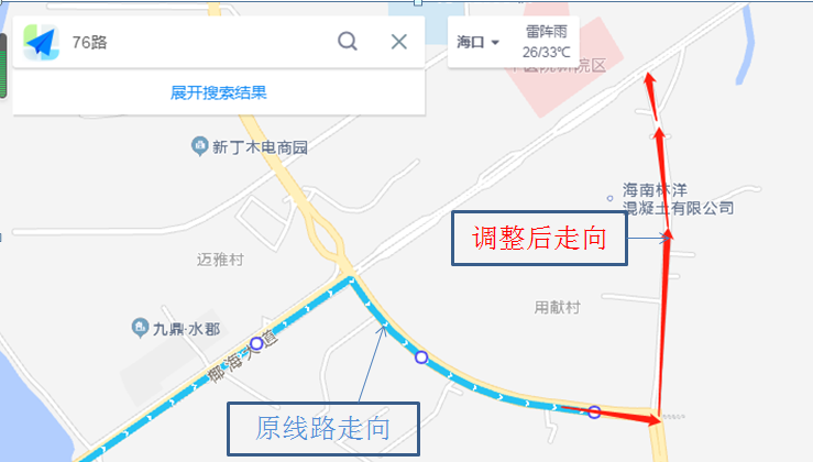 14路、44路优化调整。南渡江大道项目已完工,恢复原线路走向运营。