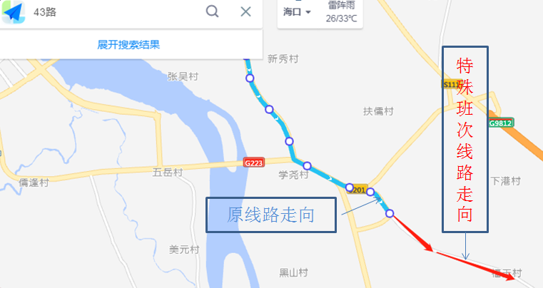 2、取消站点:往返程,海瑞故居、培龙市场、府城中学、南北水果市场。