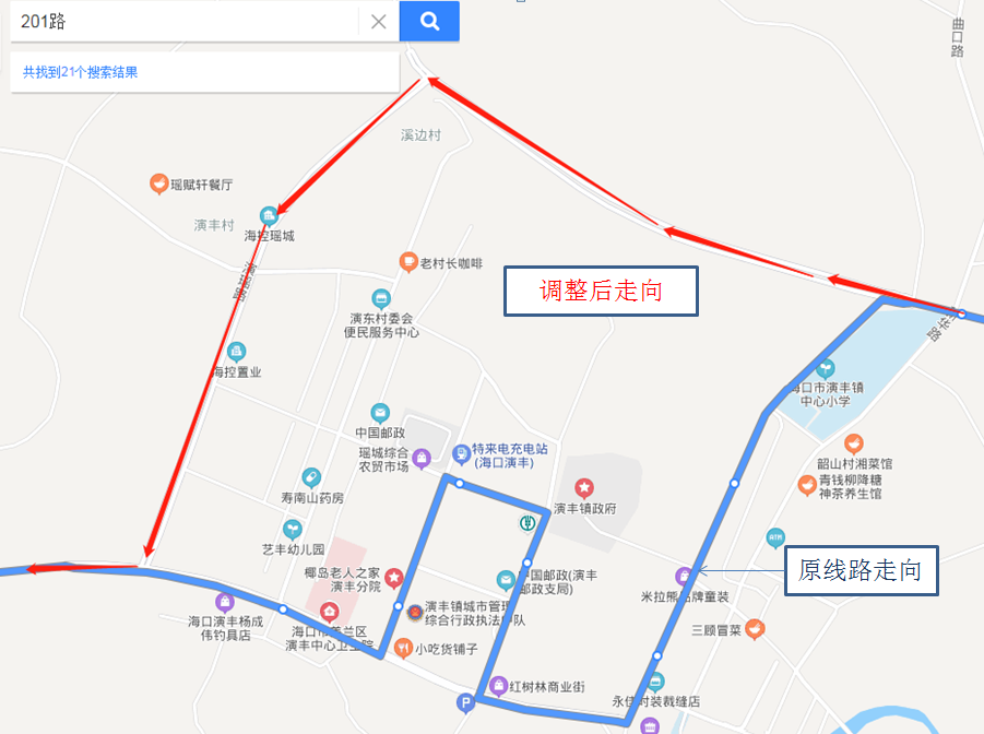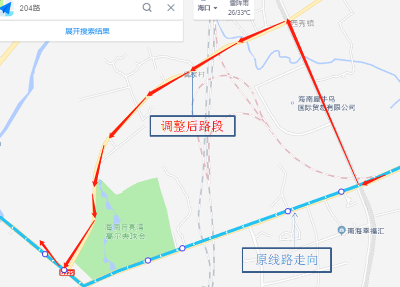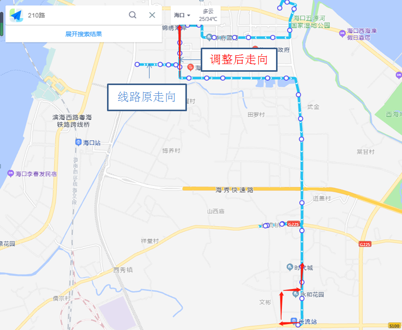 1、增加站点:往返程,中商农产品市场东门、江楠市场、海榆西线路口、荣山村、龙山村、丰盈村、丰盈村委会、拨南村、温德姆酒店;