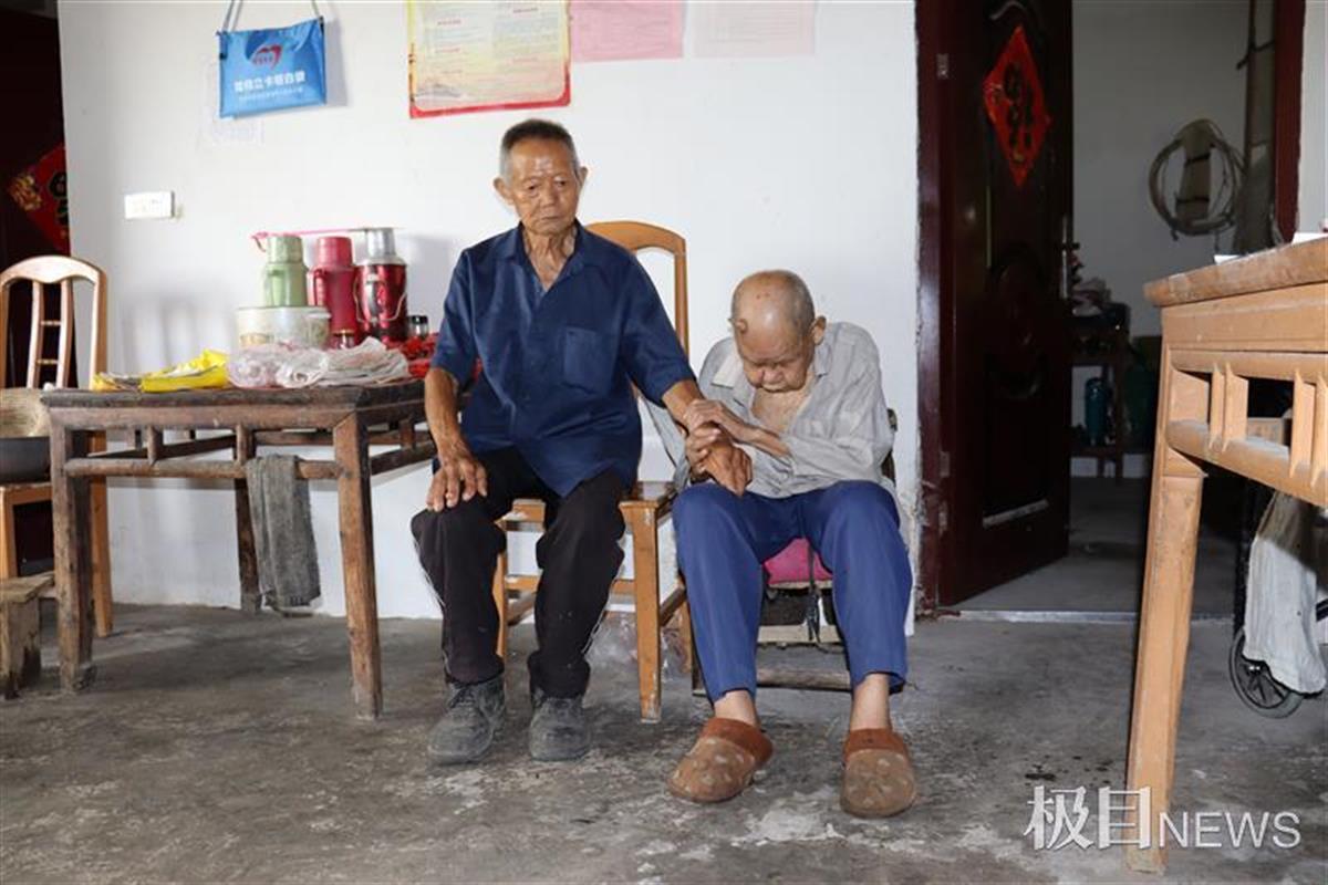 每天早晨,安陆市李店镇七汪村,人们常会看见一位白发老人用轮椅推着另一位老者在村里静静散步。