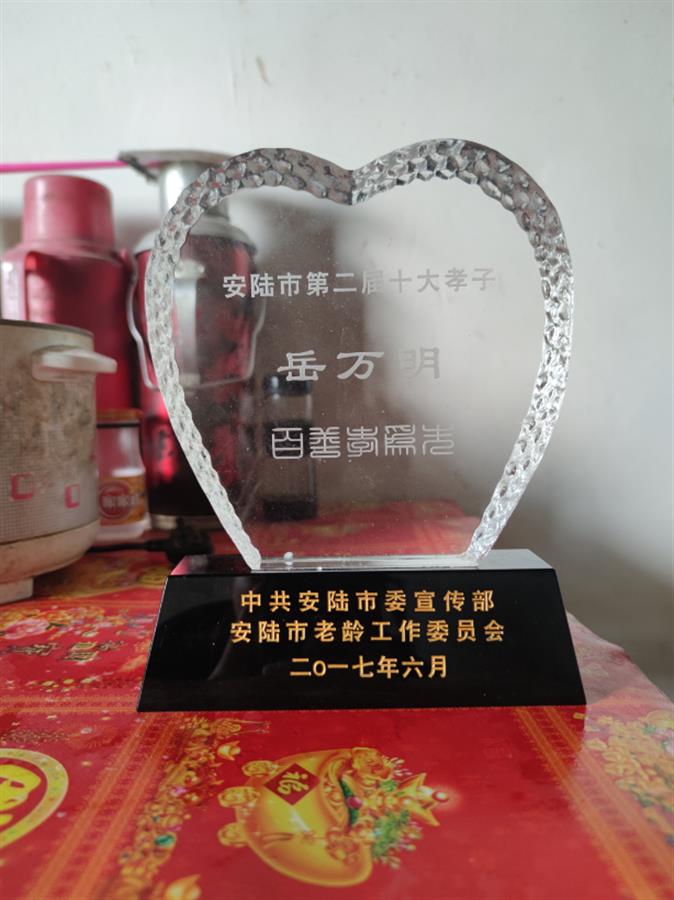 在岳万民细心照顾下,如今已年近百岁的二叔身体一直还好,岳万民孝义故事也在当地十里八乡传为美谈。2017年,他被评选为安陆十大孝子。