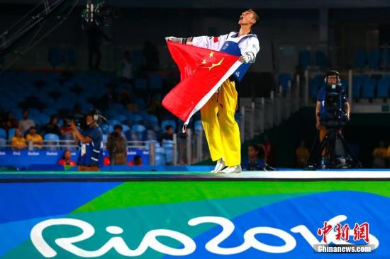 资料图:石智勇里约奥运夺冠。中新网记者 盛佳鹏 摄