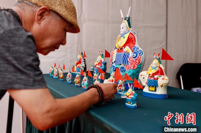 15日,中国潘家园第一届非遗文化节在北京潘家园旧货市场开幕。图为游客在泥彩塑兔儿爷展位前驻足。 中新社记者 富田 摄