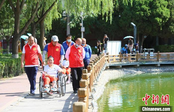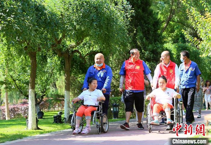 图为兰州爱心的哥带着行动不便的脑瘫姐妹逛公园。 高展 摄