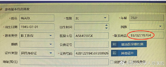 武汉大学人民医院急寻韩英玖老人!该名老人血钾危急值,随时有生命危险!看到速转告,请她立即到医院救治,或电话联系武汉大学人民医院(湖北省人民医院)24小时服务电话027-88999120。
