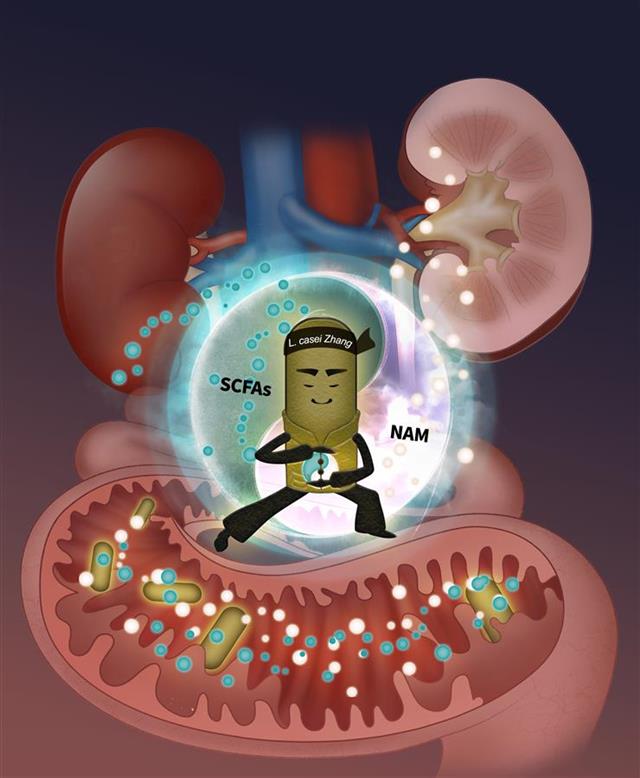 研究团队发现,口服干酪乳杆菌Zhang可以减轻双肾缺血再灌注导致的急性肾损伤及之后的慢性肾纤维化,效果优于普通嗜酸乳杆菌。而预防性补充干酪乳杆菌Zhang可以改善由双肾缺血再灌注引起的肠道菌群失调、肠道炎症和肠道黏膜屏障损伤。通过代谢组学分析技术,他们发现补充干酪乳杆菌Zhang可以增加短链脂肪酸和烟酰胺,进而减轻双肾缺血再灌注后的肾脏炎症和损伤。