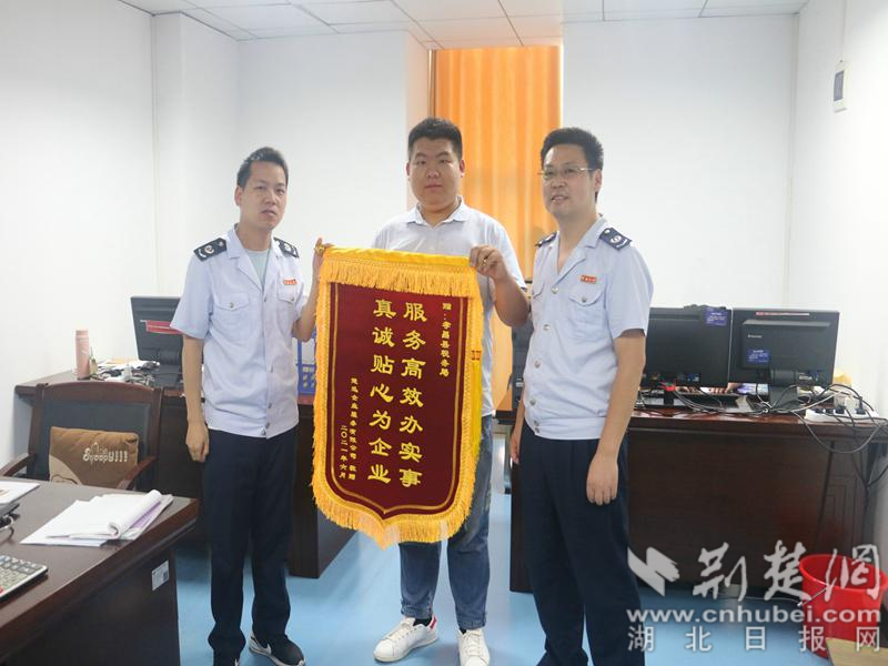 荆楚网(湖北日报网)讯(通讯员 黄壮)7月7日,一名纳税人将一面写着“服务高效办实事 真诚贴心为企业”的锦旗送到孝昌县税务局第二税务分局,对该局注销团队的高效优质服务一再表示感谢。