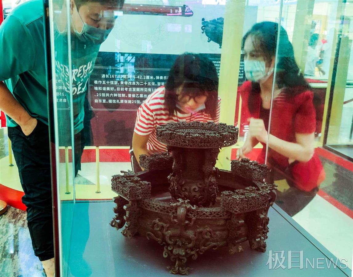 7月18日,“赏国宝、听荆楚声音、看国潮风尚”,省博物馆“探见博物馆之旅”正在武汉菱角湖万达广场举行。