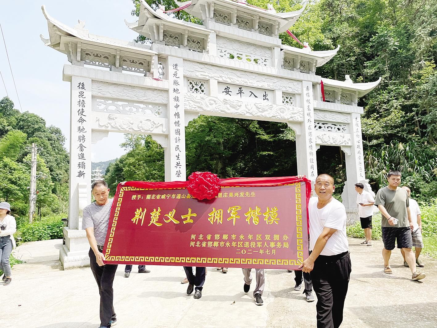 河北省邯郸市永年区双拥办和退役军人事务局送来牌匾。(湖北日报全媒记者 周鹏 摄)