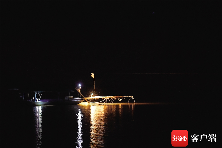 夜晚的昌化江面上一片平静,随着天色渐暗,除了几个垂钓者头上的探照灯外,四周没有光亮。记者爬上一处山坡上看到,江的对岸有几处较强灯光。有村民告诉记者,这种灯叫诱鱼灯,到了晚上灯一打开,灯光所照的江面下提前放好连江网或地笼,鱼被灯光诱引过来后,大鱼小鱼被一网打尽。连江网或地笼收起后,电鱼船还会继续在同样位置处电鱼,将被灯光诱来的鱼赶尽杀绝。