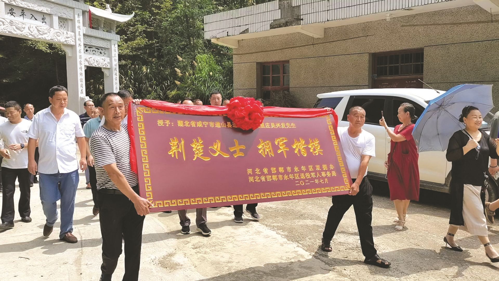 7月18日,邯郸市永年区退役军人事务局工作人员、乔凤山部分近亲属等来到湖北通山,将乔凤山烈士遗骸回迁永年烈士陵园安葬。