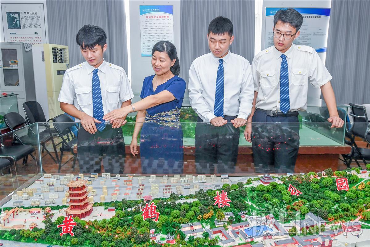 “黄鹤楼作为武汉的重要地标,疫情期间经历了最孤单的黎明和黄昏,也见证了无数人为这座城市的苏醒而拼命。2020年4月8日的夜晚,灯光重启后的黄鹤楼璀璨夺目,千古名楼重新归来……”武汉交通职业学院导游模拟实训室里,2020级旅游管理2班的学生正在深情解说黄鹤楼。