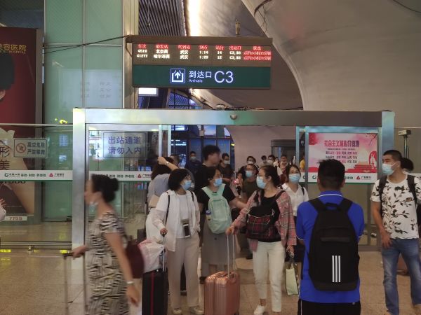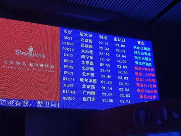 在到达厅内,记者发现5趟列车出现晚点情况。其中G695次列车,从太原开往广州南,途经武汉,晚点606分钟。其他列车晚点时间,从115分钟至211分钟不等。