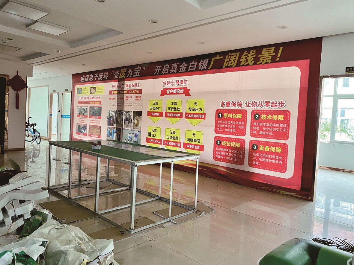 陈先生不禁动了心。他搜索找到近10家类似公司,便在每家公司的宣传页面留下了自己的联系方式。很快,陆续有多家公司的客服联系他,向他介绍“电子垃圾炼金”的相关原理。其中,巩义市再生金环保科技有限公司(下称“再生金公司”)客服对他说,该公司正在扩大招商规模,有两种合作模式,且技术包教包会。