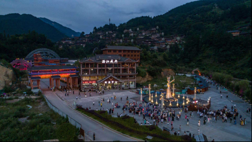 晚上20:30,《西江盛典》正式开演。以108栋吊脚楼古村落为舞台背景、600多年历史苗族建筑“水上粮仓”为实景,现场大气磅礴,给媒体团及游客们带来一场震撼心弦、如诗如梦的视觉盛宴。