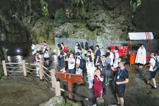 近三小时的参观时间,媒体记者们或细赏洞天美景,或沿壁触摸奇景,或拍下悦目的洞中天地。
