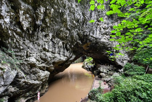这里有世界上最密集的天窗溶洞群,入地的伏流在长达两公里的暗河上,形成连续九个各具特色的天窗溶洞群。景区内自然风光奇特,沟壑纵横,伏流明暗交替,洞洞相连。进入洞内,目之所及,一步一景,隐秘的地下世界,一幅幅绝美图卷铺展眼前,令大家流连忘返。